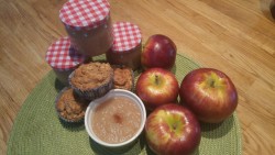 Muffins aux pommes et aux dattes[i] Temps de cuisson : 20 minutes                             Temps de préparation : 15 minutes Nombre de portions : 12 muffins Par Portion : 119 kcal,  21 g de glucides, 3g. lipides, 2g. de fibres, 3g. de protéines Ingrédients 3/4  tasse (175mL) de farine de blé entier 1/2  tasse (125mL) de farine  tout usage 1/2..